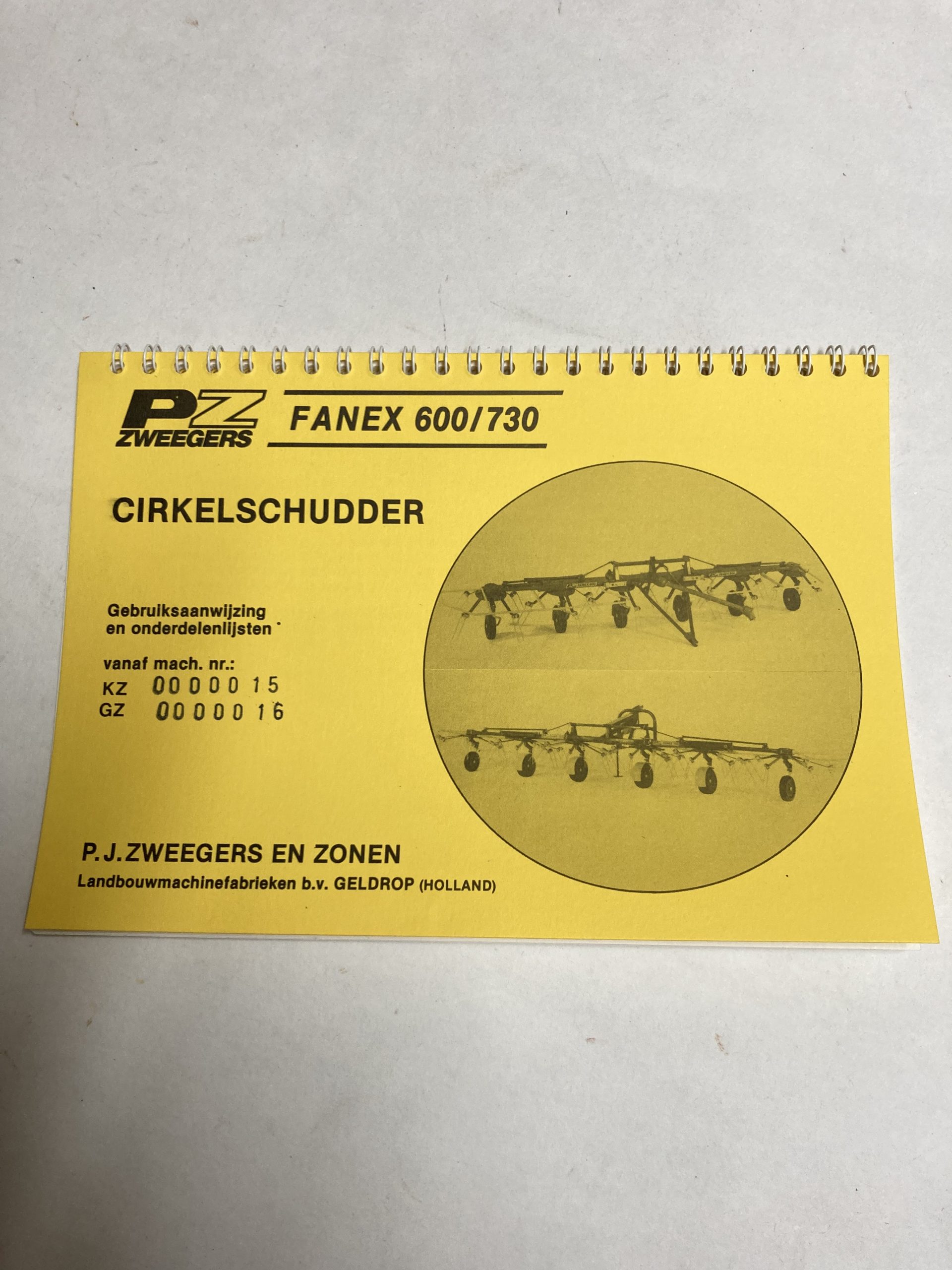 PZ schudder Fanex 600 en 730 originele handleiding met onderdelenlijsten.