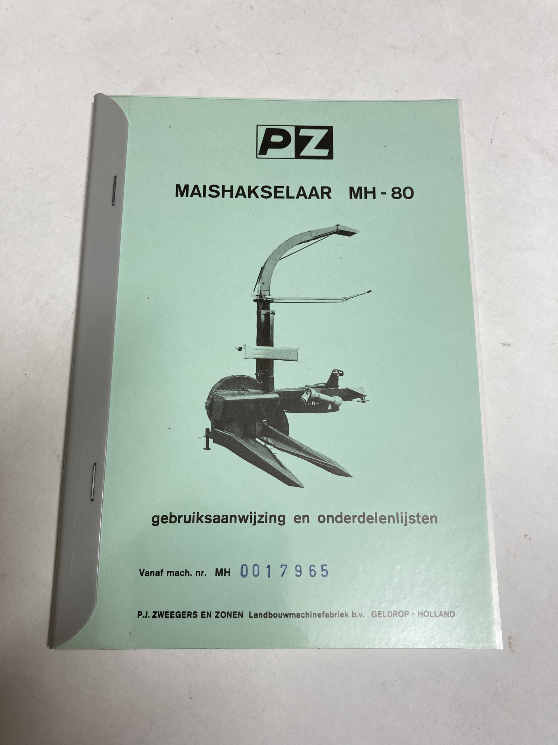 PZ maishakselaar MH80 originele handleiding met onderdelenlijsten.