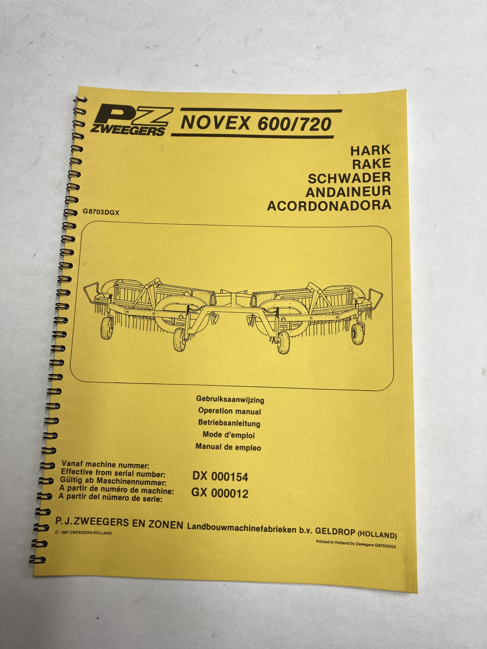 PZ hark Novex 600/720 originele gebruikershandleiding.