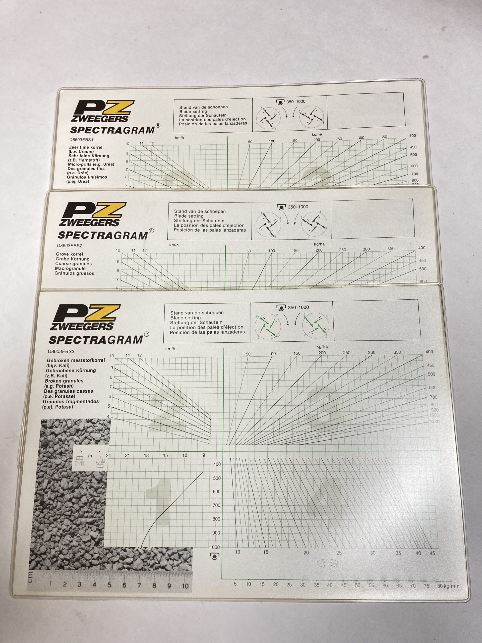 3 stuks dubbelzijdige Spectragrammen voor PZ Spectra kunstmeststrooiers.