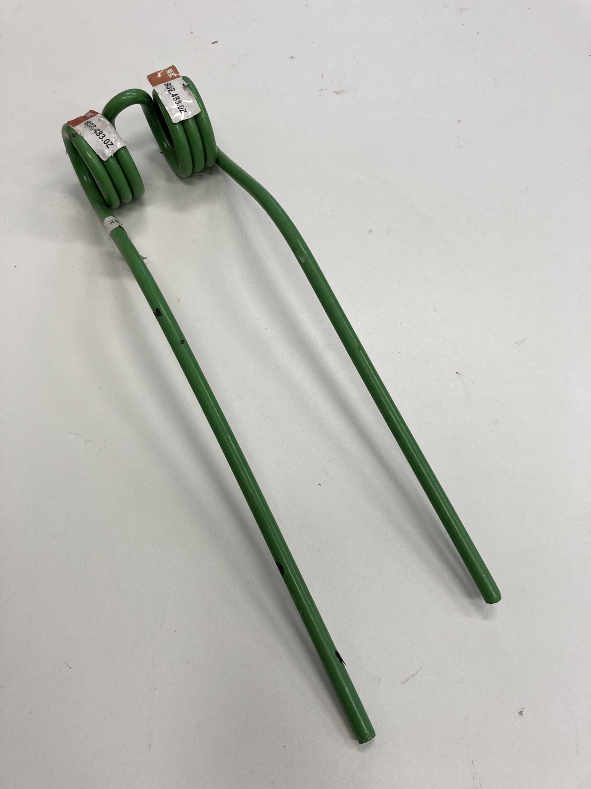 Het betreffen tanden uit een partij van new-old stock en zijn dus nieuw, maar heeft een tijd op voorraad gelegen in een magazijn. Hierdoor kan de verf beschadigd zijn en/of vliegroest aanwezig zijn. De kleur kan afwijken van de hooitand op de foto.