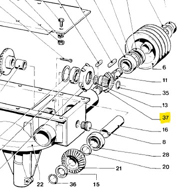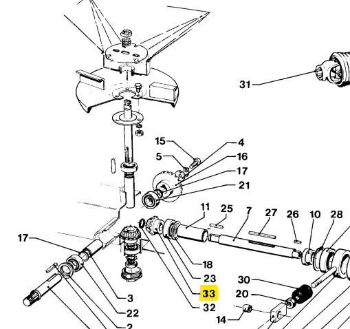 Komt in de cyclomaaier op de horizontale aandrijfas in de bak.